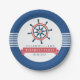 Navy Blue Nautical Boat Wheel & Stripes Pappteller