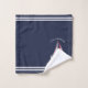 Erstellen Sie mit Monogramm Wasserbad-Accessoires in den Farben Blau, Weiß und Rot für Ihr Seehaus. Life is Better am Lake Sprichwort ist mit einer Segelbootillustrierung mit roten und weißen Segel und marineblau-weißen Streifen dekoriert. Text und Bootsdarstellung werden in der rechten unteren Ecke platziert. Wenn Sie es in der Mitte mögen, sehen Sie bitte eine Sammlung oder besuchen Sie: https://www.zazzle.com/nautical_navy_blue_and_white_sailboat_lake_life_bath_towel_set-256632402147210271 Template macht es einfach, dieses nautische Badehandtuch Set mit Ihrem Namen oder Familiennamen zu personalisieren.