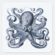 Navy Blue Octopus Illustration von Ernst Haeckel Quadratischer Aufkleber