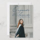 Moderne Abschluss-Ankündigung mit dem vertikalen Foto des Absolventen mit "Auf und Ab" in einem marineblauen, handgeschriebenen Skript. Personalisieren Sie die Front der Ankündigung des Foto Abschluss durch Hinzufügen des Graduiertennamens, Schule und Abschluss Jahr. Die Ankündigung kehrt zurück, um ein zusätzliches Foto mit den künftigen Plänen des Absolventen, Party-Details, etc. gezeigt unten.