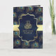 Navy Blue Peacock Feathers QR Code Muslim Wedding Einladung