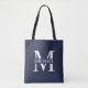 Personalisierte Monogramm- und Namensgeschenke mit personalisiertem, weißem Monogramm im klassischen Serif-Schriftart-Stil mit einem Namenskasten in der Mitte des Monogramms auf marinebasischem Hintergrund.