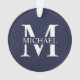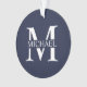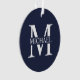 Personalisierte Monogramm- und Namensgeschenke mit personalisiertem, weißem Monogramm im klassischen Serif-Schriftart-Stil mit einem Namenskasten in der Mitte des Monogramms auf marinebasischem Hintergrund.
