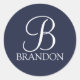 Navy Blue Personalisiert Script Monogram und Name Runder Aufkleber