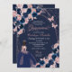 Navy Blue & Pink Butterfly Princess Quinceanera Einladung