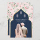 Navy Blue Pink Floral Anand Karaj Sikh Wedding Einladung