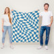 Navy Blue Psychedelic Checkered Groovy Grid Patter Fleecedecke