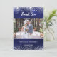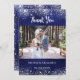 Feiern Sie Ihren besonderen Tag und drücken Sie Ihre herzliche Dankbarkeit mit unseren Custom Foto Wedding Cards, elegant entworfen mit einem raffinierten marineblauen, unebenen Hintergrund und mit Imitaten silbernen Glitzer. Diese Erinnerungen sind sowohl stilvoll als auch persönlich und bieten eine einzigartige Möglichkeit, Ihren Gästen zu danken. Personalisieren und fügen Sie Ihr Foto und danke Ihnen notieren. Weißer Text. Fügen Sie Ihren URL/Link zu Ihrer Hochzeitswebsite für weitere Fotos hinzu.