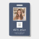 Navy moderne minimale Foto QR Code Namensschild Logo Abzeichen Design.