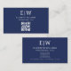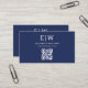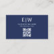 Navy Blue QR Code Monogram Minimalistisch Visitenkarte