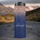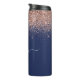 Navy Blue Rose Gold Blush Pink Glitzer Monogram Thermosbecher