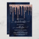 Navy Blue Rose Gold Glitzer Tropfens Bachelorette Einladung
