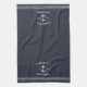 Mit diesem niedlichen personalisierten Handtuch mit Familienname oder Hausnamen und Jahr in zarter Elfenbeinschrift, mit einer nautischen Ankerdarstellung auf dunkelmarinebaublauem Hintergrund.