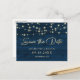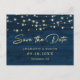 Navy Blue Rustic Holz String Leuchten Save the Dat Ankündigungspostkarte