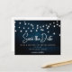 Navy Blue Rustic Holz String Leuchten Save the Dat Postkarte