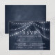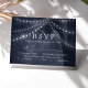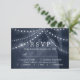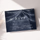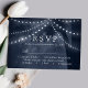Navy Blue Rustic Tree Lights Wedding RSVP Karte