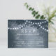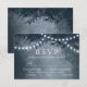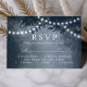 Navy Blue Rustic Tree Lights Wedding RSVP Karte