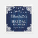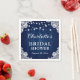 Elegante marineblaue Papierservietten aus rustikalem Brautparty mit rustikalem Holzboden, mit Lichtern und weißer Blumenspitze.