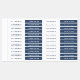 Erstellen Sie Ihre eigenen Etiketten für Speisen und Getränke! 2 Einfache und moderne Platten von 48 Etiketten wasserdicht und Geschirrspüler sicher für die Kennzeichnung von Gegenständen für die Pflege, Wohnwagen, Schule, Arbeit, Sport, Büro. Ein kühnes, urbanes Template-Design in klassisch marineblau-weiß, geschlechtsneutral, mit einem grunge bedrängten Serif-Schriftart für Schreibmaschinen, vollständig anpassbar in jeder Farbe und jedem Schriftart. Machen Sie Ihren eigenen Namen wasserdicht und tragen Sie die Etiketten ein, behalt Ihre persönlichen Sachen vor Verlust.