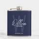 Navy Blue Script Personalisiert Trauzeuge Name Flachmann