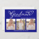 Navy Blue Script Photo Collage Graduation Card Einladung