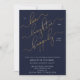 Navy Blue Script Probe Dinner Einladung