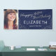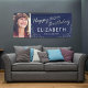 Editierbares 60. Geburtstagsbanner mit einem stilvollen marineblau-Hintergrund, der in jede Farbe verändert werden kann, ein Foto des Geburtstagsjungen/Mädchens, silberner funkelnd Glitzer, die Worte "glücklicher 60. Geburtstag" in einem Imitat silberne Folie Drehbuch, ihren Namen und das Datum.