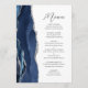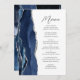 Navy Blue Silver Agate Moderne Skripthochzeit Menükarte