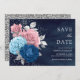 Navy Blue Silver Dusty Pink Floral Wedding Save The Date