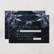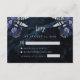 Navy Blue Silver Floral Agate Script Wedding RSVP Begleitkarte