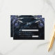 Diese elegante Hochzeitskarte mit blühenden Blumenbouquets Set mit silbernen Imitate-Folie in zwei Ecken, auf einem Hintergrundbild von marineblauen Aquarell. Der anpassbare Text kombiniert silbergraue Serif- und Handschriftzeichen mit Schriftart. Die Rückseite ist mit einem blauen und silbernen Blumenmuster und einem passenden Age-Design ausgestattet.