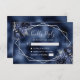 Die elegante Hochzeitskarte RSVP verfügt über einen silbernen geometrischen Rahmen, der mit blühenden und silberblauen Blumenbouquets auf einem seeblauen Imitat-Hintergrund dekoriert ist. Der anpassbare Text kombiniert silbergraue, weißliche Handschrift und kopperplate-Schriftart. Die blaue Folie wird auf der Rückseite wiederholt.