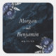 Navy Blue Silver Floral Wedding Quadratischer Aufkleber