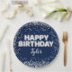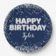 Navy und Silber Geburtstagsparty Papier Teller für ein lustiges Party mit einem modernen klassischen Look mit Glitzer- und Folienballons auf personalisierten Papier Tellern.