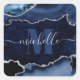 Navy Blue & Silver Glitzer Marbour Agate Monogram Quadratischer Aufkleber