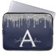 Navy Blue Silver Glitzer Sparkle Monogram Laptopschutzhülle
