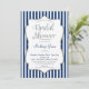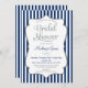 Eine elegante Braudusche aus blau und silbergrau mit silberfarbenem Glitzer-Akzent-Rahmen in den Imitaten und marineblau-weiße Streifen mit grauem und blauem Text. Dieser moderne Polterabend lädt Sie ein, Ihre Duschgäste zu einem wunderbaren Fest zu empfangen.