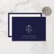 Senden Sie Nachrichten mit einer persönlichen Touch auf unserer Marine und silbernen Mitteilungskarten, mit einem ausgeklügelten Silber-Gerechtigkeitslogo. Ideal für Anwälte, um ihr Engagement für Service und Exzellenz zu vermitteln.