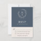 Navy Blue Simple Elegangram RSVP Card