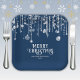 Navy blaue und weiße Saitenleuchten Glitzern Weihnachtszeitung Teller mit einer niedlichen whimsical Spaß Party Einladung für eine festliche Feier Urlaub.