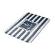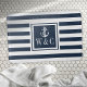 Navy Blue Stripe Monogram Initials Nautical Anchor Badematte