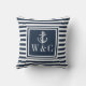 Navy Blue Stripe Nautical Anchor Monogram Kissen