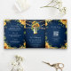 Navy Blue Sunflowers Mason Jar QR Code Hochzeit Dreifach Gefaltete Einladung