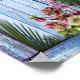 Blaues Vintages Holz strukturierte kreatives künstlerisches Design mit rosa Blume Dekoration für einen Gast oder eine Strand-Hütte für eine Hochzeit. Diese Kollektion ist mit einem passenden Gästebuch für Hochzeitsgäste oder Urlauber ausgestattet