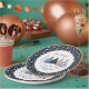 Weihnachts-Party-Papier-Teller mit modernen, schlichten, blauen Weihnachtsbäumen und gepunkteten Mustern in der gleichen Farbe. Personalisieren Sie den Text einfach oder verließ Sie ihn leer - Kate Eden Art