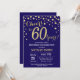 60. Geburtstag Einladung mit Navy Blue und Gold Glitzer Diamond Hintergrund. Gold Confetti. Erwachsener Geburtstag. Männer oder Frauen zum Geburtstag.