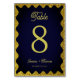 Navy Blue und Gold Glitzer Wavy Retro Hochzeit Tischnummer