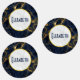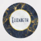 Personalisierte wasserdichte Etiketten mit stilvollem und elegantem Hintergrund aus Marineblau und Goldmarmor. Oben platziert ist ein Kreis mit einem Imitat, der eine goldene Folie mit dem personalisierten Text enthält.
