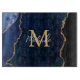 Dieses Schnittboard zeichnet sich durch einen eleganten und glamourösen Marmorhintergrund aus, mit geode gemstone Details und Imitaten goldenen Glitzer Akzente. Das Monogramm kombiniert handgeschriebene Skripte mit modernen serifenlosen Schriftart für ein elegantes und raffiniertes Aussehen. Dies wird das ideale Geschenk, da es mit einem Namen und Initial angepasst werden kann. Die tiefen blauen Farbtöne machen es perfekt für Herbst und Winter.