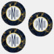 Labels mit stilvollem und elegantem Hintergrund aus Marineblau und Goldmarmor. Oben platziert ist ein Kreis mit einer goldenen Folienabdeckung in Imitaten, in der sich das personalisierte Monogramm befindet.